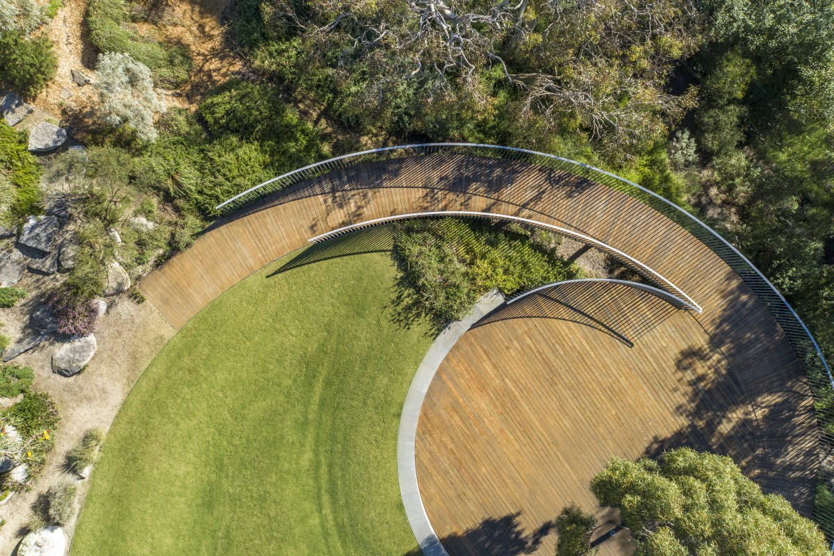 An immersive forest of Tristaniopsis laurina creates a transition to the informal lower garden that includes a generous events lawn and deck surrounded by the bio-diverse garden with meandering pathways.