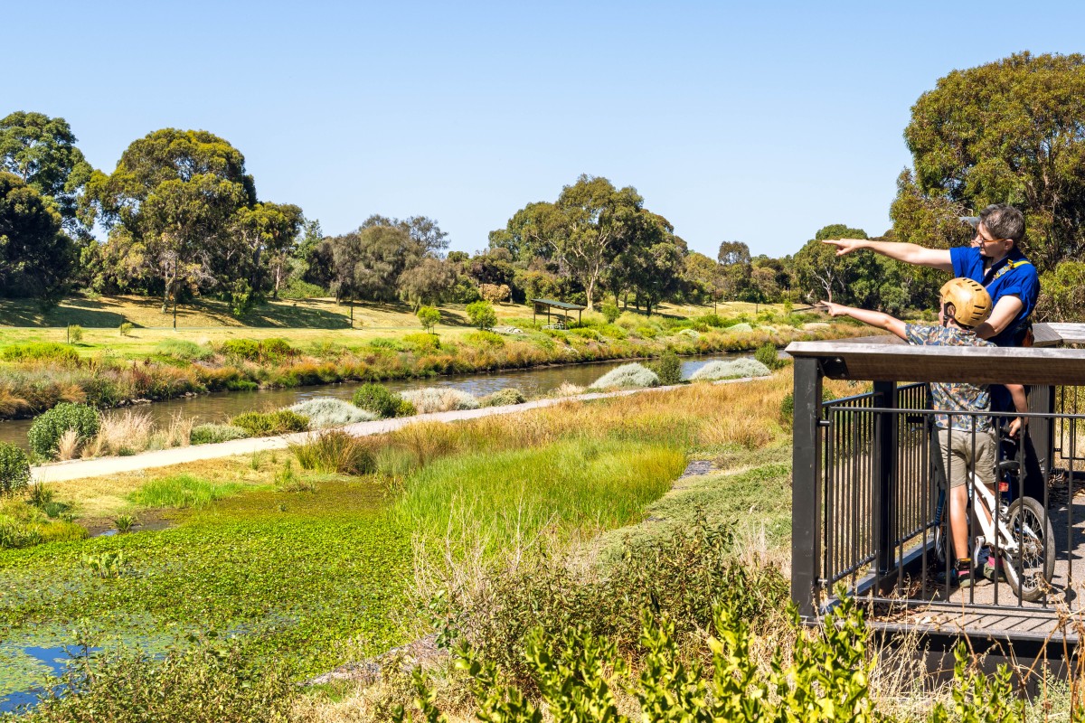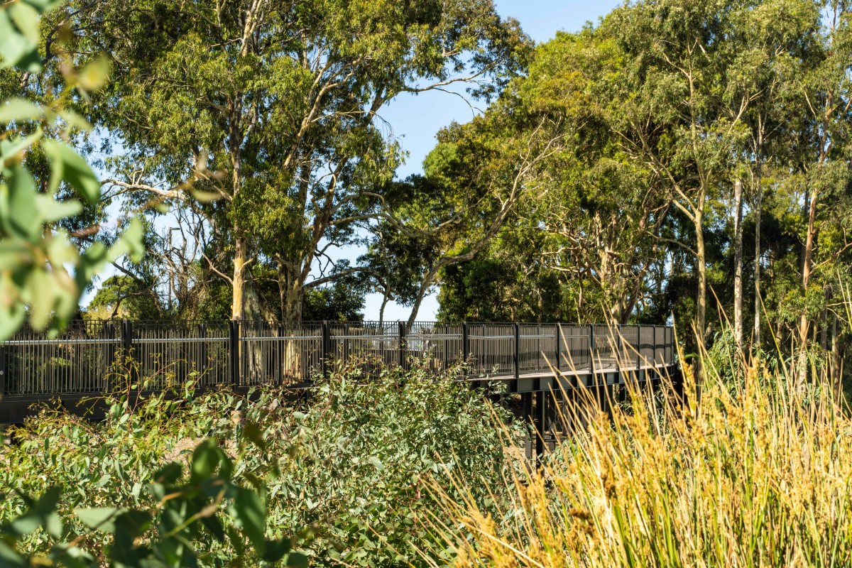The project includes over 6.2km of walking trails and shared paths, 11,400sqm of permanently vegetated wetlands, five viewing decks, new river crossing and accessible boardwalk.