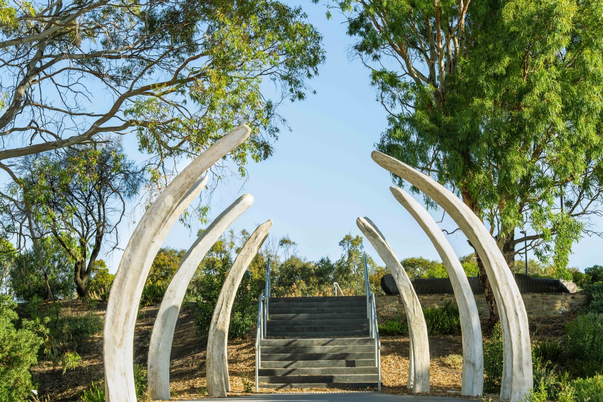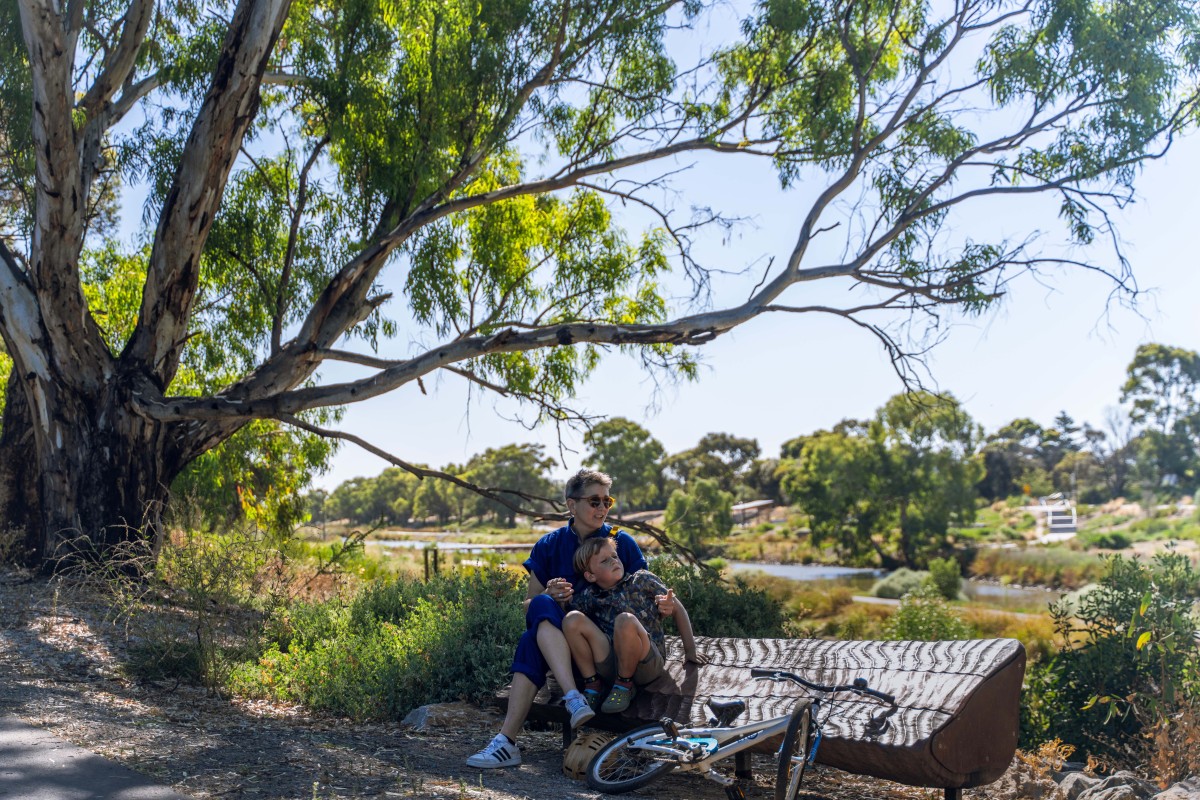 Integration of multiple interpretive artworks by artist Allan Sumner enliven the recreational river system and act as a reminder that the site has a long history of use, management and cultural significance for Kaurna Meyunna.