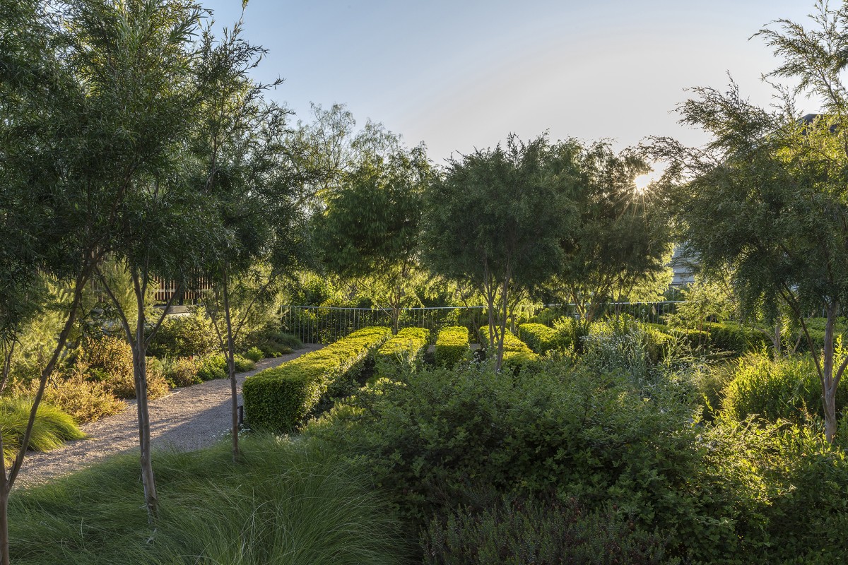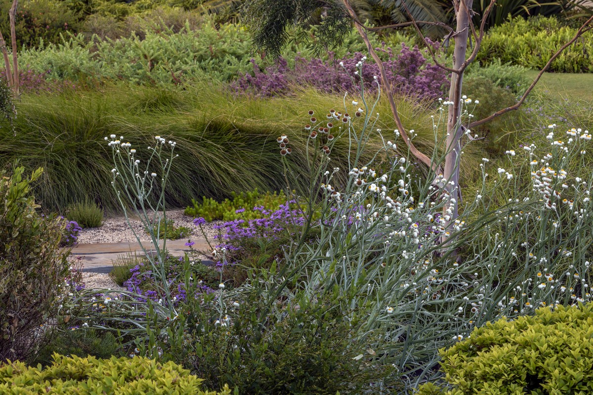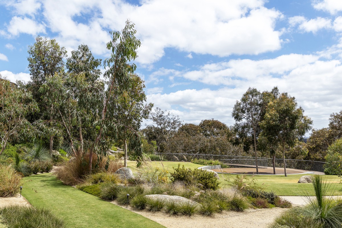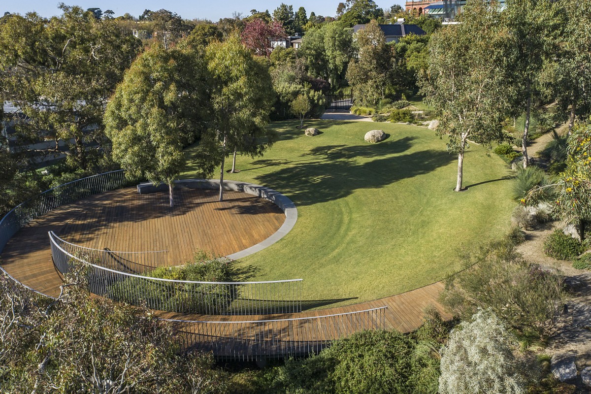 An immersive forest of Tristaniopsis laurina creates a transition to the informal lower garden that includes a generous events lawn and deck surrounded by the bio-diverse garden with meandering pathways.