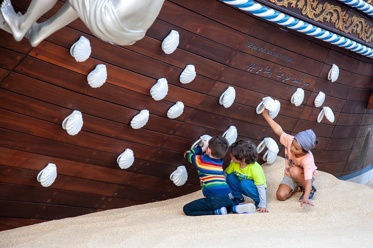 The Adventure Ship playground is laid open on the sand, ready to explore, it reveals the remains of the legendary sailor and trader Erahmah Bin Jaber’s treasure and the ‘shipwreck’ of his most famous ship, the Ghatrousha.
