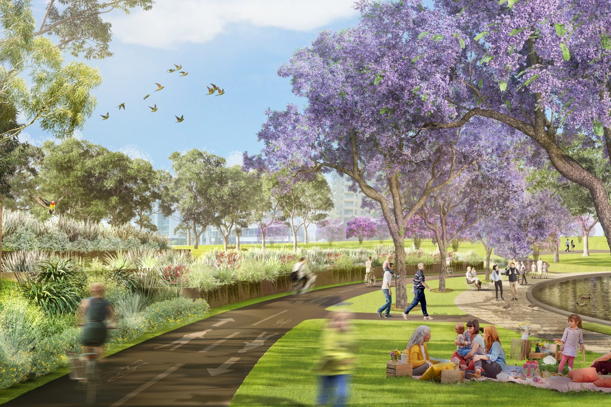 The revitalised parkland features a new & reconfigured lake edge, with a sealed base, extensive rain gardens, improved walking paths, and an improved event space.