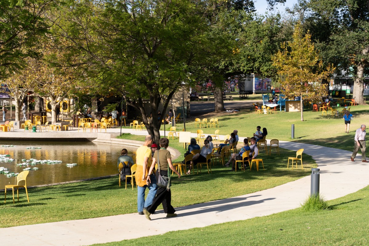 The project also includes a Lake Walk loop, inviting visitors to stroll under the shade of existing and newly planted trees along the water’s edge. Separate paths for cyclists and pedestrians strengthen connections to Adelaide’s trail network.